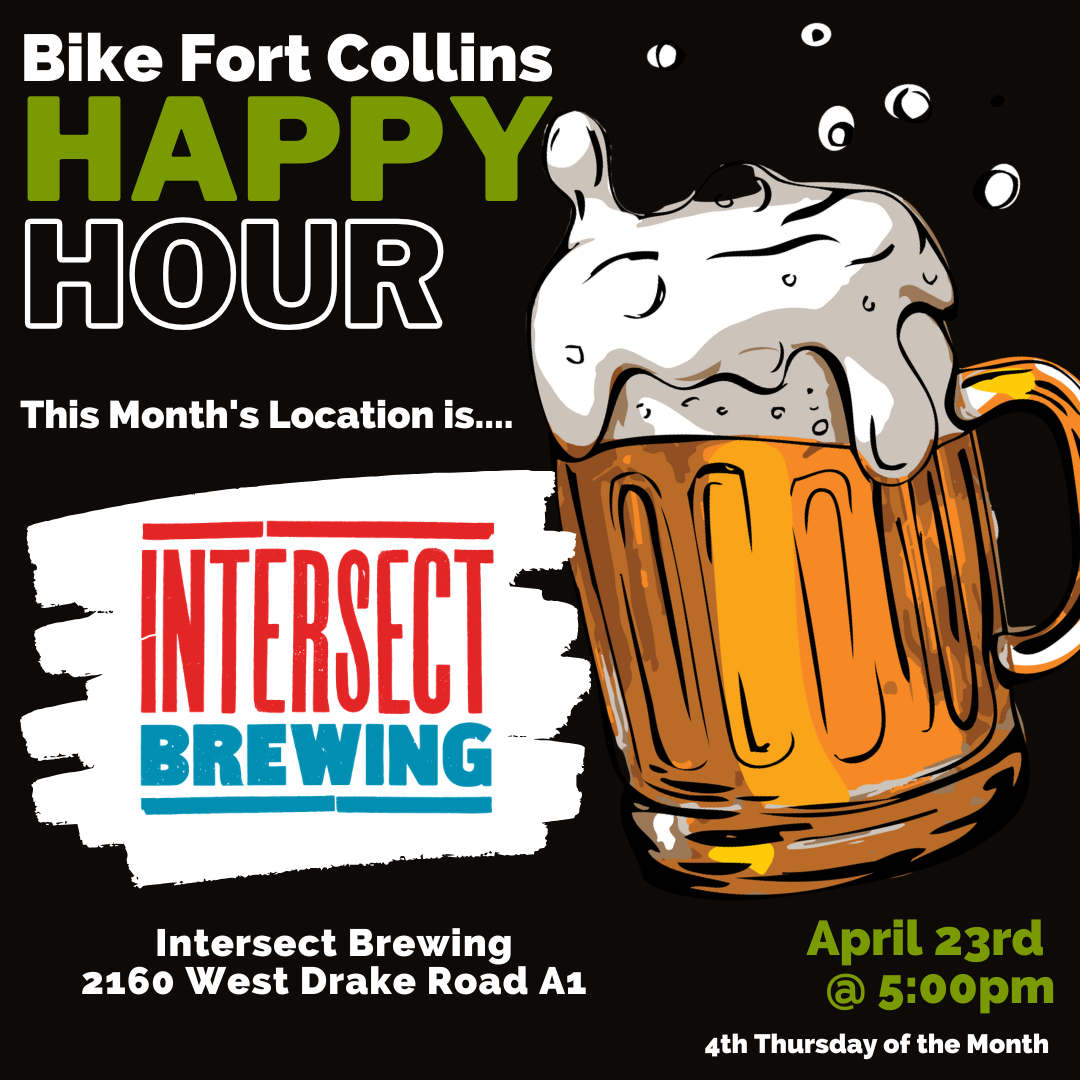 Come out and join us for 4th Thursday Bike Fort Collins happy hour, 5:00pm at Intersect Brewing! This is a great time to just enjoy the growing bicycle camaradie that is Bike Fort Collins and support one of our local businesses!