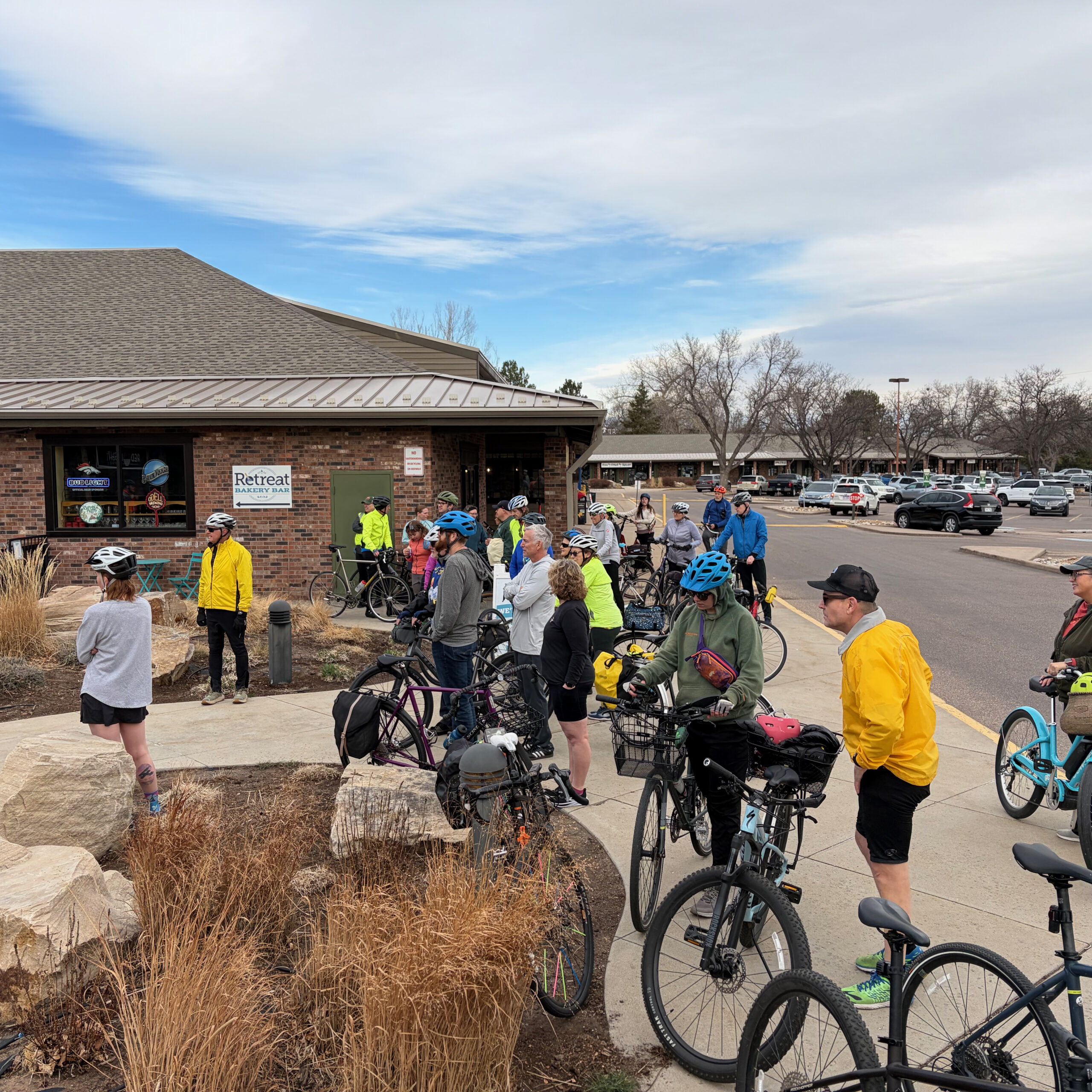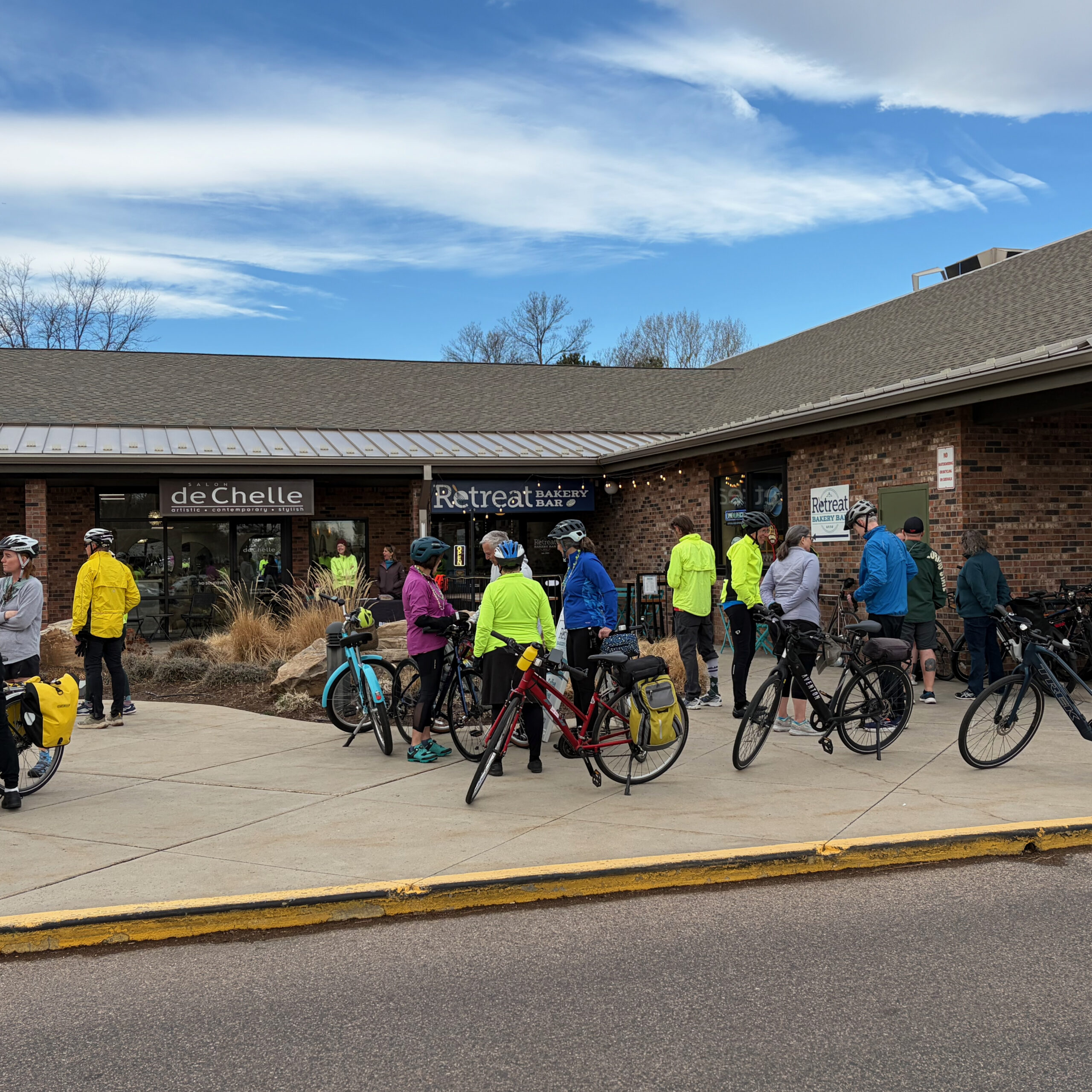 With the weather fully on our side for a mid-March ride, more than 45 riders rolled in early Saturday morning to Retreat Bakery and Bar, where Anne and Kathy kicked things off with check-in, warm smiles, and great energy. By 9am, wheels were spinning and the adventure was underway.