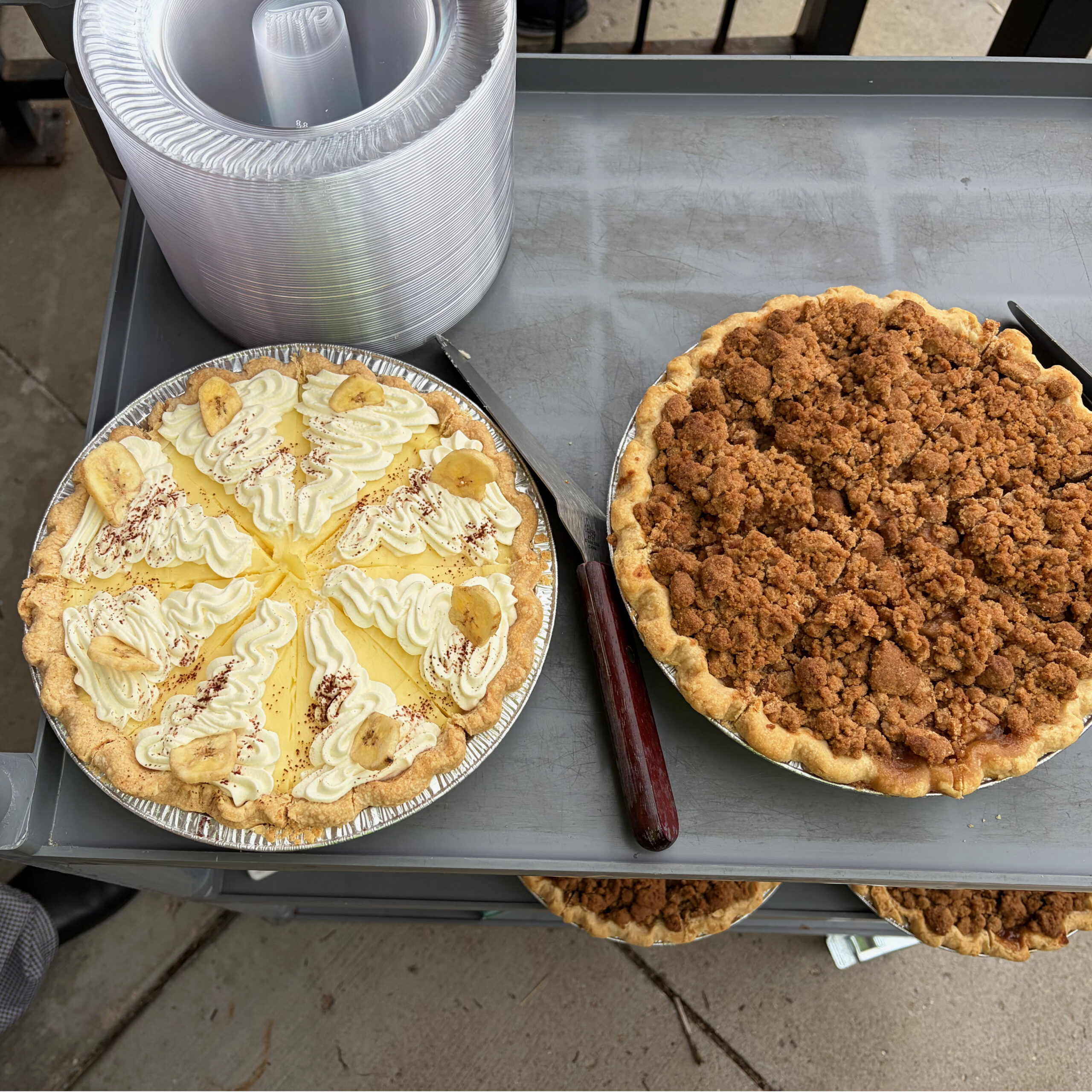 Then it was time for the grand finale—back to Retreat Bakery and Bar after about 10-ish miles of riding, laughing, and eating our way through town. Owners Michael Owens and Co-Proprietor Cat brought it home with two final heavy hitters: Three Apple Pie or Banana Cream Pie. Yes…another impossible choice.